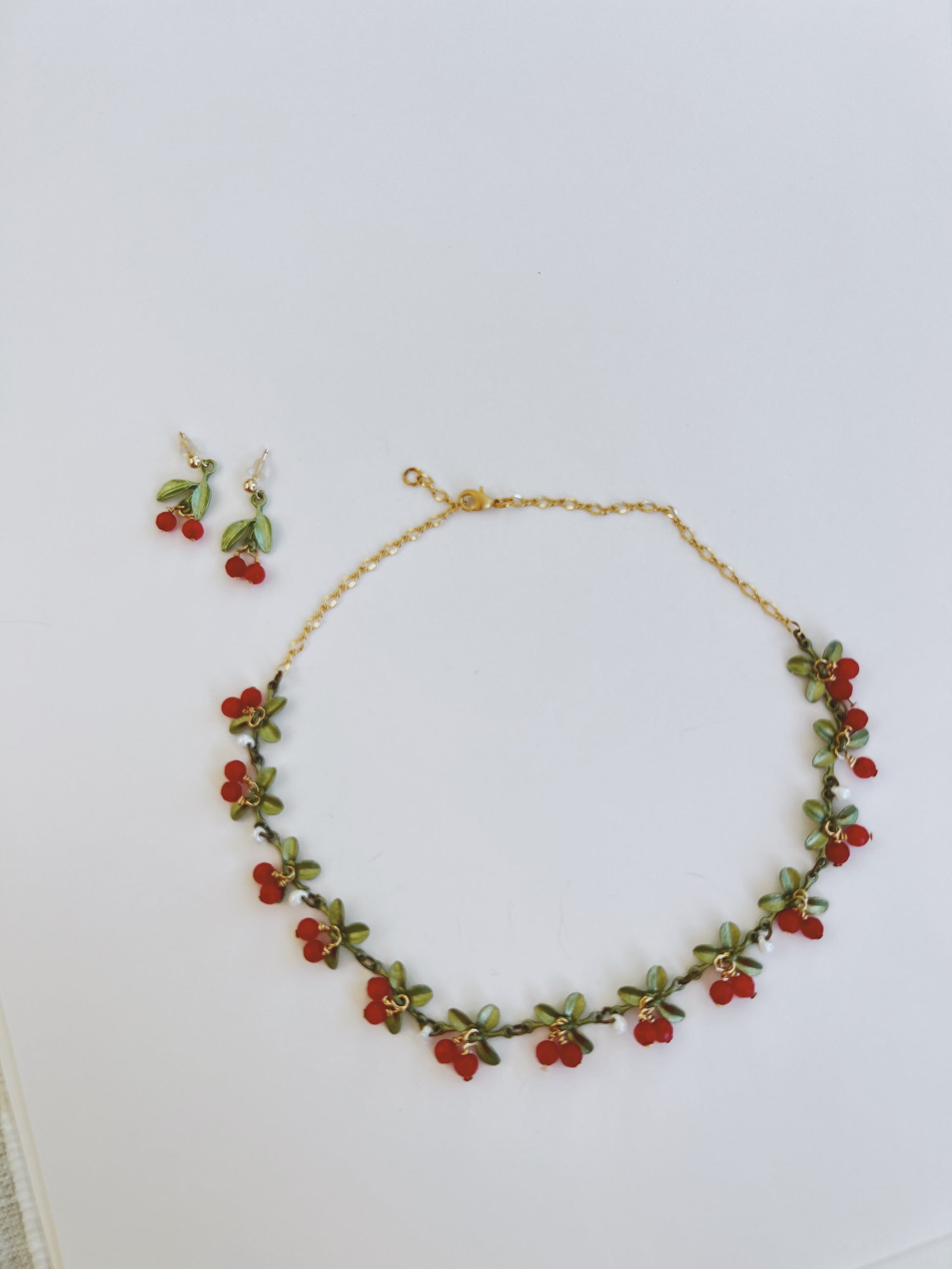 These vintage-inspired cherry earrings feature delicate red with a little pink shine beads paired with softly textured green leaf charms, evoking a nostalgic, romantic feel. Each pair is carefully handcrafted and finished with 14K gold-filled components, offering both durability and a warm, timeless glow. Lightweight and playful yet elegant, they add a subtle pop of color and charm to everyday looks or special occasions. A sweet statement piece that blends retro character with modern look!